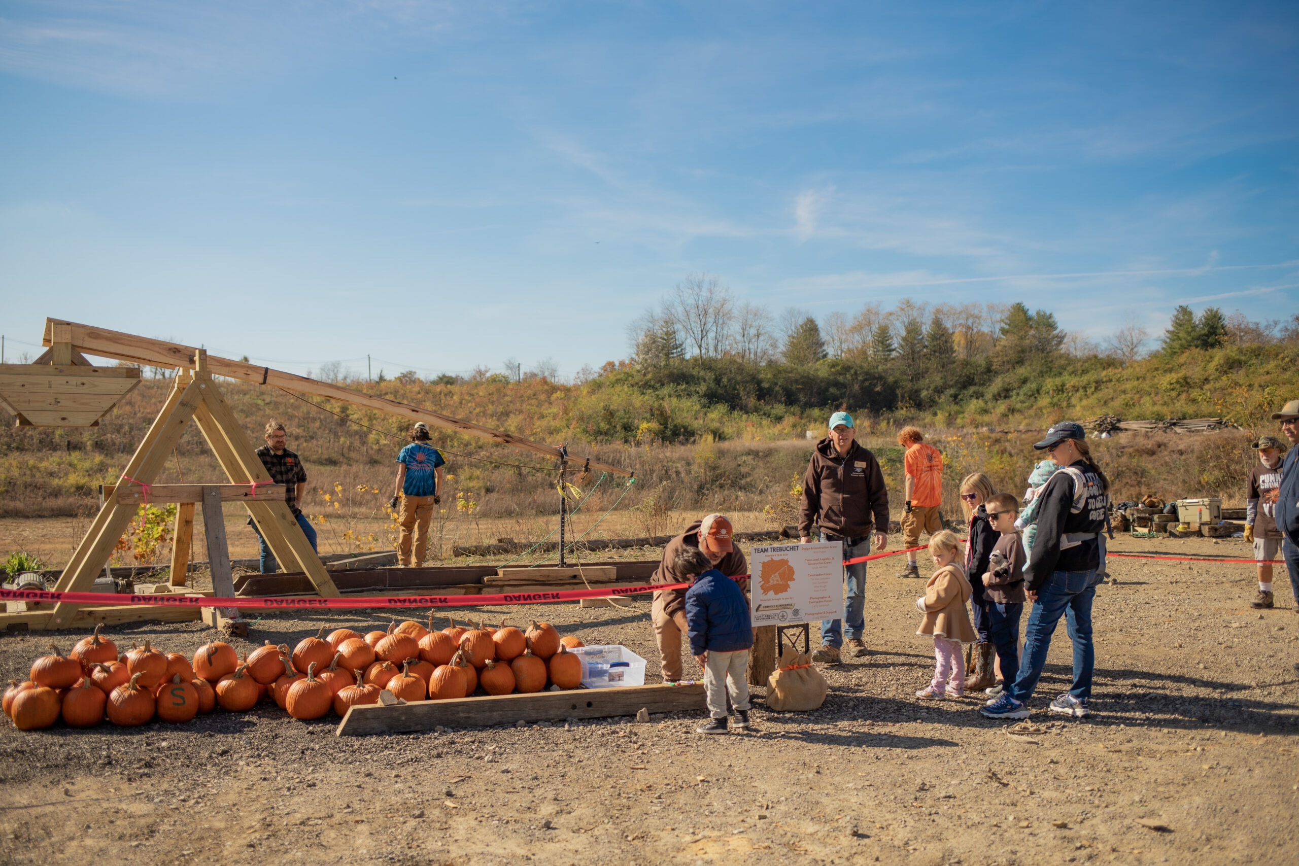 The Pumpkin STEM Festival uses the trebuchet as a fun teaching tool, turning the excitement of a flying pumpkin into a hands-on lesson in physics. When kids watch a pumpkin soar, they’re not just laughing—they’re asking questions: